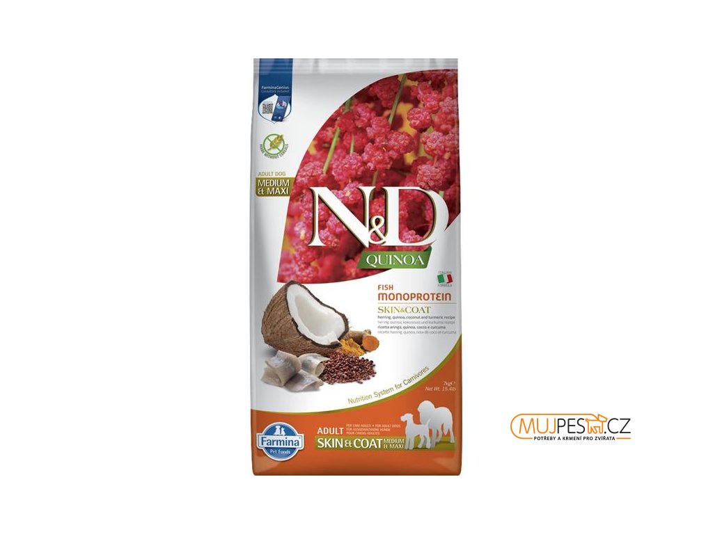 N&D QUINOA Dog GF Skin & Coat, Herring & Coconut Adult Medium & Maxi 7 kg