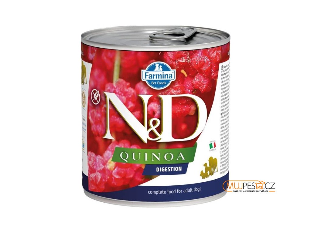 Farmina N&D Quinoa Digestion je krmivo pro zvláštní účely výživy určené k podpoře kompenzace maldigesce a exokrinní pankreatické nedostatečnosti.