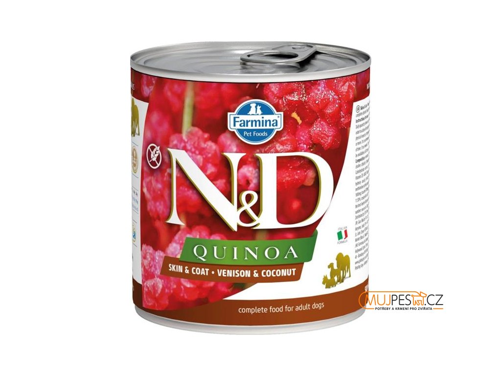 Farmina N&D Quinoa Venison & Coconut je krmivo pro zvláštní účely výživy určené k podpoře omezení intolerance určitých komponentů a živin.