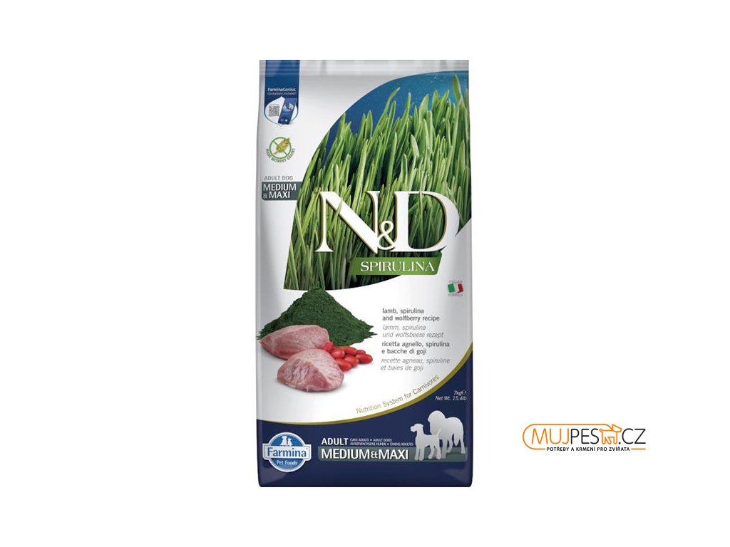 N&D SPIRULINA Dog GF Lamb & Wolfberry Adult Medium & Maxi 7 kg