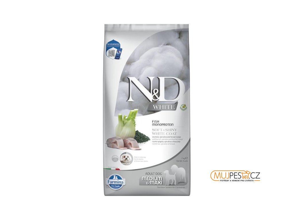 N&D WHITE Dog GF Sea Bass, Spirulina & Fennel Adult Medium & Maxi 7 kg