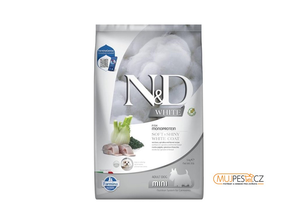 N&D WHITE Dog GF Sea Bass, Spirulina & Fennel Adult Mini 5 kg