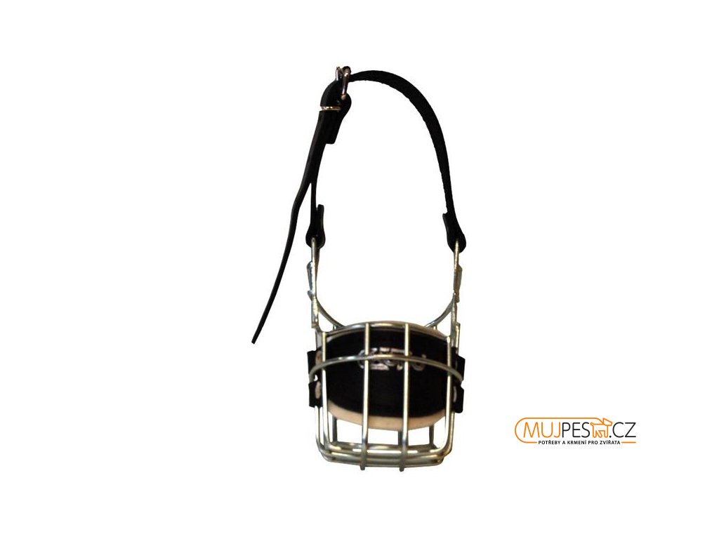 Kovový náhubek s upínacími řemínky z barexu. Kvalitní chromovaný kov zajišťuje kvalitu a dlouhověkost výrobku. Díky potahu totiž kovová konstrukce nemůže korodovat a náhubek v zimě nepřimrzá k psímu čenichu. Zároveň je výrobek snadno omyvatelný. Vhodný zejména pro plemena: špic.