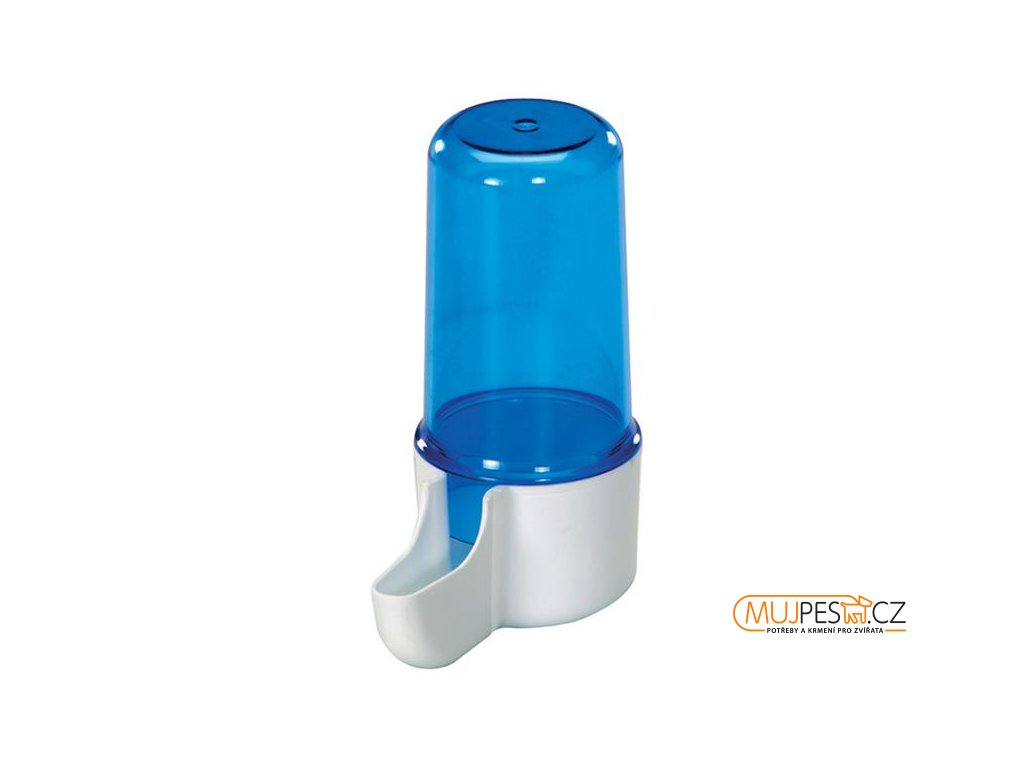 Napájka s úzkým pítkem pro drobné exotické ptáky. Objem 80ml.