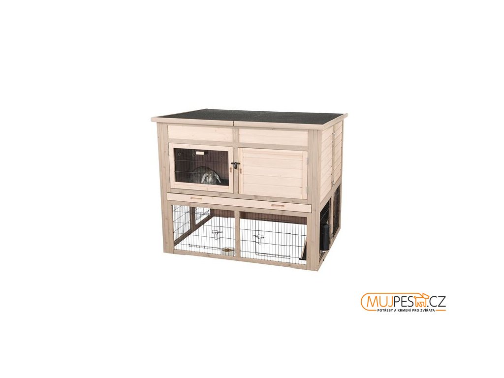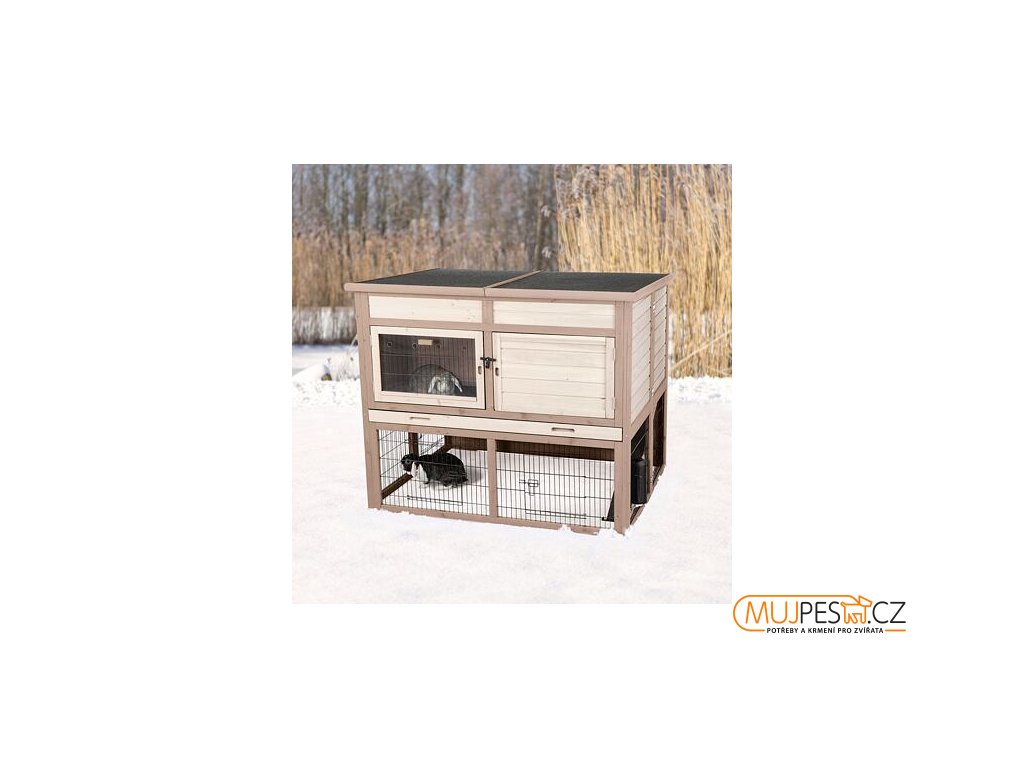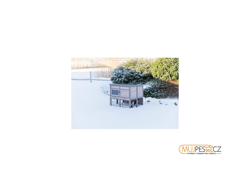 Natura zateplená králíkárna XL: 120 × 98 × 94 cm, 2 patra, spodní výběh, šedá