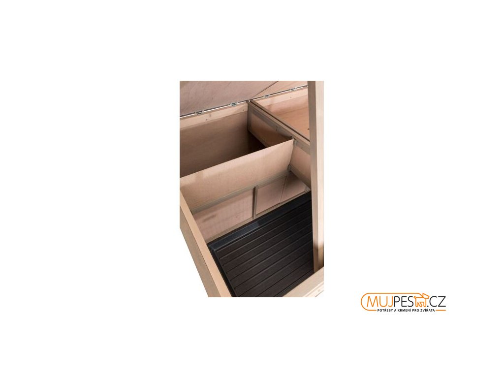 - uzavíratelný podlahový poklop s plastovým potahem, zamezí v případě potřeby vstup do spodního výběhu králíkárny