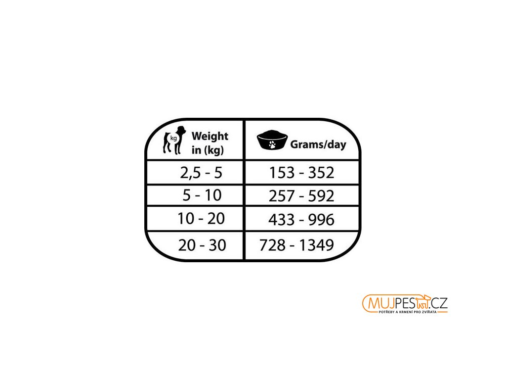 Krmný návod v tabulce na obale.