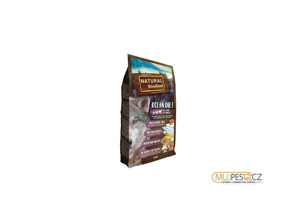 Kompletní suché krmivo Ocean Diet s čerstvým masem z bílých ryb v super prémiové kvalitě je vhodné pro všechna plemena psů bez rozdílu věku.