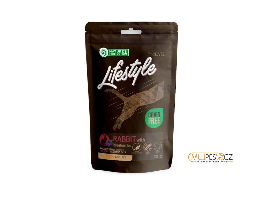 Nature's Protection Cat snack Lifestyle králičí plátky a borůvky 75 g