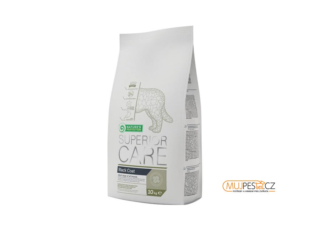 Nature's Protection Superior Care Black Coat Dog Adult All Breed - kompletní krmivo pro dospělé psy všech plemen s černou srstí starších více než 1 rok. Jedinečná receptura byla vyvinuta speciálně pro potřeby psích plemen s černou srstí.