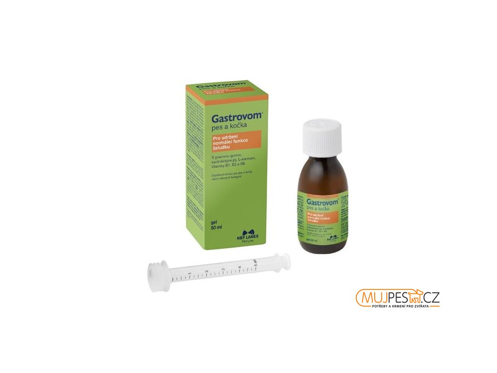 NBF Lanes Gastrovom je přírodní doplňkové krmivo ve formě gelu pro psy i kočky všech věkových kategorií, určené k podpoře normálních funkcí trávicího traktu a udržení optimální hladiny žaludeční kyseliny. Přípravek je vhodný při nevolnosti i kinetóze během cestování. Gel má konzistenci tekutého želé, které chrání žaludeční sliznici a pomáhá zabránit návratu žaludečního obsahu do jícnu.