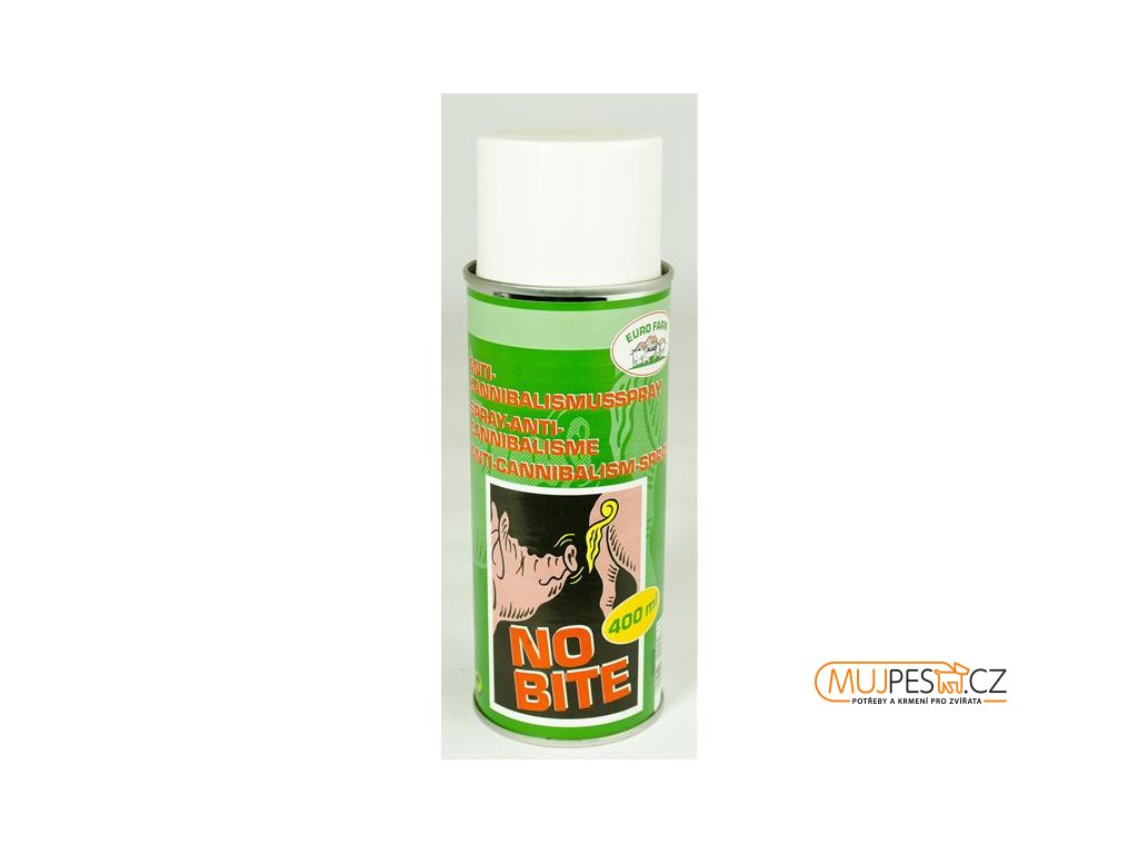 Sprej proti kanibalismu prasat a drůbeže NO BITE 400 ml. Sprej trvale mění pachový profil v okolí prasat nebo drůbeže a tím dokáže vytvořit uklidňující klima v kotcích nebo drůbežárně.