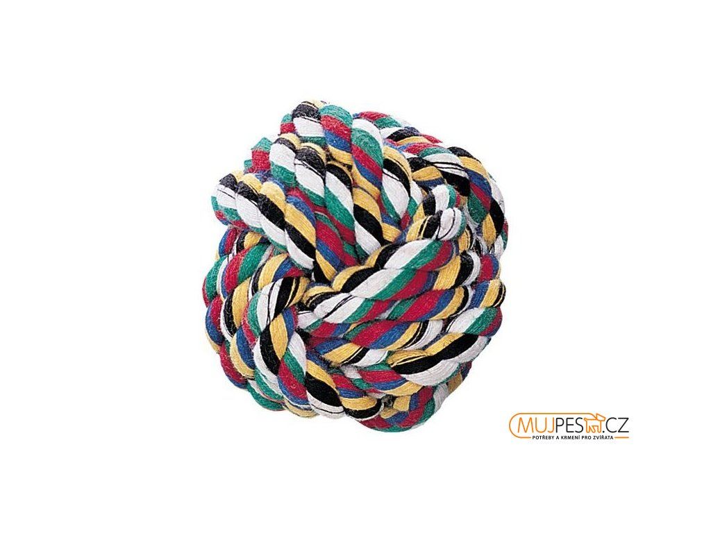Provázaný míček z bavlny. Vhodné na aport. Velmi odolné. Váha 50g, velikost ø 5cm. Hraním pejsek pečuje o zuby a mezizubní prostory.
