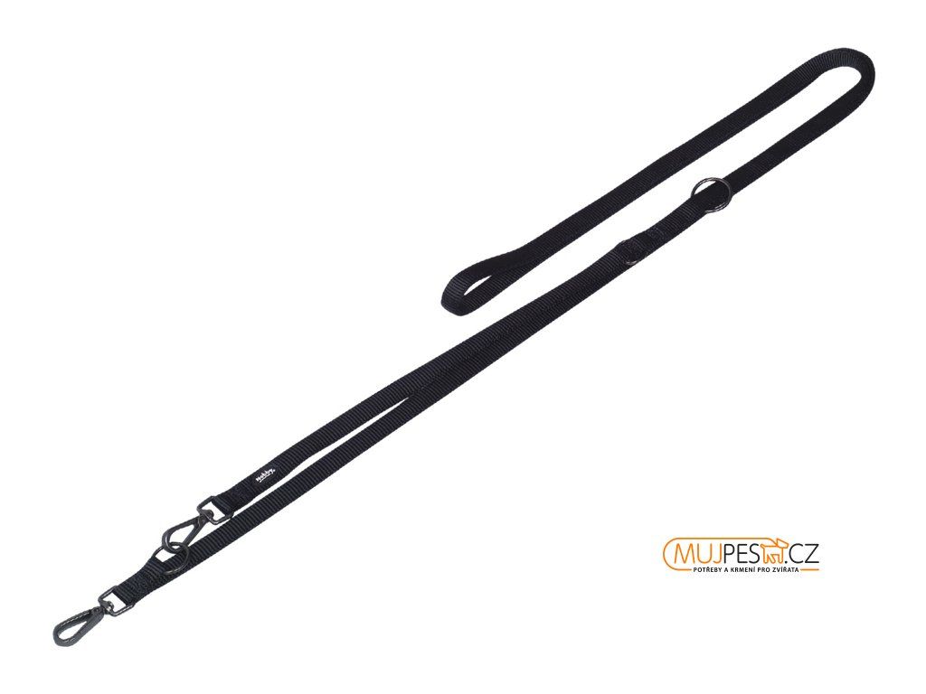 Přepínací extra měkké vodítko Nobby vyrobené z pevného nylonu. Vodítko disponuje nevšedními kovovými černými doplňky matného vzhledu, zejména pak stylovou karabinou pro uchycení vodítka nebo postroje.