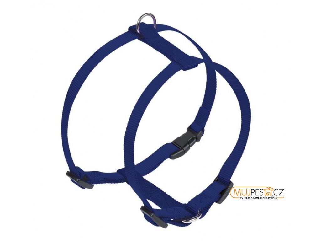 1-vrstvý nylonový postroj. Nastavitelná velikost kolem hrudníku 30 - 50 cm. Šířka postroje 15 mm.