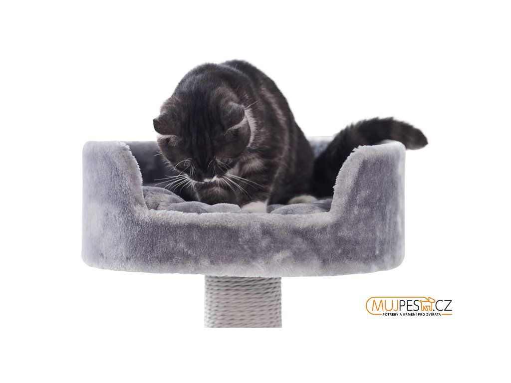 Toto škrabadlo nabízí několik úrovní, které vaší kočce umožní šplhat, odpočívat a brousit si drápky. Odpočívadla jsou umístěna v různých výškách, což uspokojí přirozenou touhu koček po lezení a poskytne jim rozhled po okolí. Pelíšek je měkký a útulný, ideální pro pohodlný odpočinek nebo schovávání se.