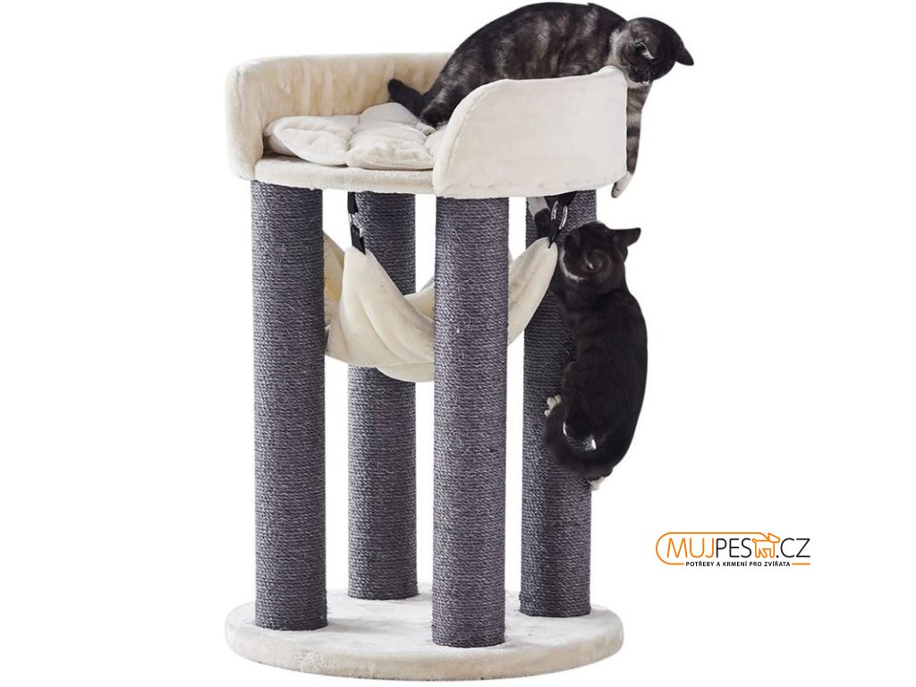 Škrabadlo pro kočky s odpočívadly a pelíškem je ideální volbou pro každého majitele kočky, který chce svému mazlíčkovi poskytnout pohodlné a funkční místo k odpočinku a hře. Tento prostorově úsporný design je perfektní pro byty a menší prostory, kde je potřeba maximálně využít každý centimetr.