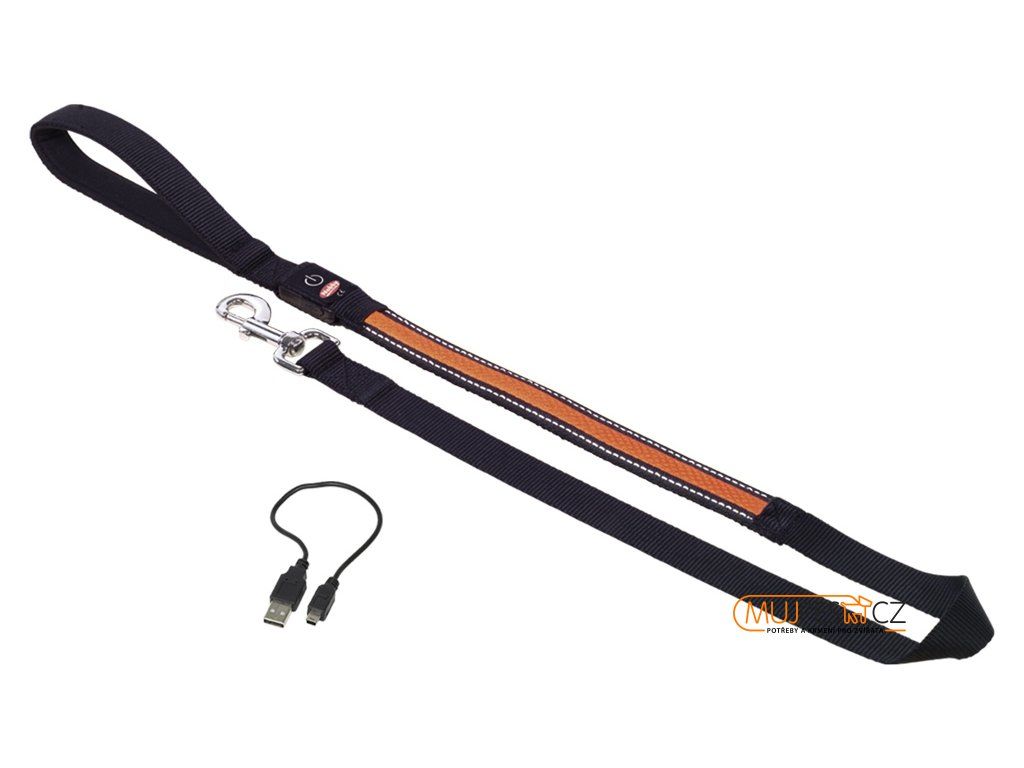 Oranžové svítící vodítko je praktickým průvodcem při nočních procházkách s Vaším čtyřnohým kamarádem nebo v ročních obdobích s nedostatkem světla. Vašeho psa budete vidět Vy i ostatní účastníci silničního provozu do vzdálenosti až 500 m po dobu 2 hodin.