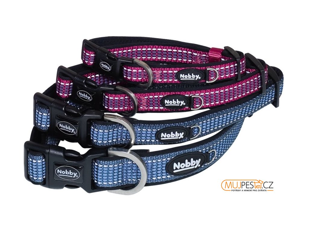 Nobby KALEA obojek nylon reflexní modrá M-L 50-65cm