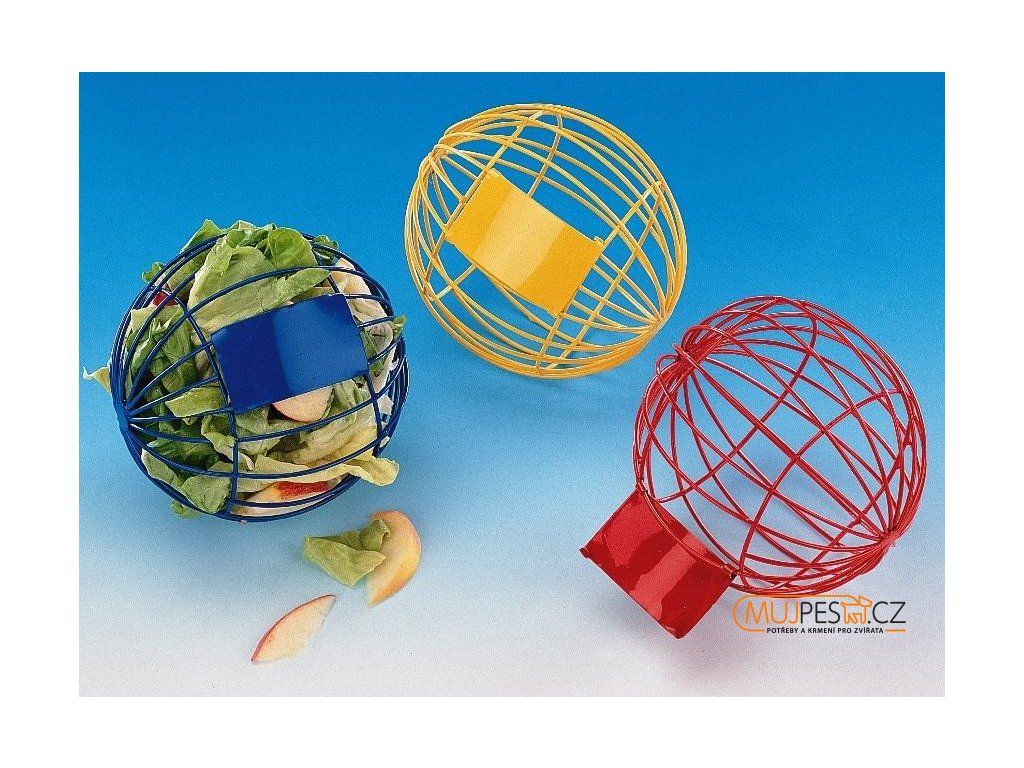 Zhotovený ze silného drátu s otvorem pro potravu. Můžete plnit salátem, ovocem nebo jinými pamlsky. Různé barvy.