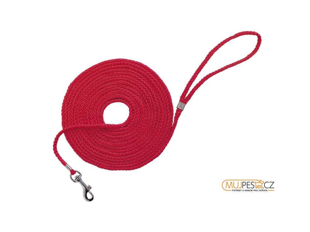 Lehounké šňůrové stopovací vodítko z nylonu vhodné pro pachové práce nebo kontrolu pohybu štěňat. Červená, dobře viditelná barva.