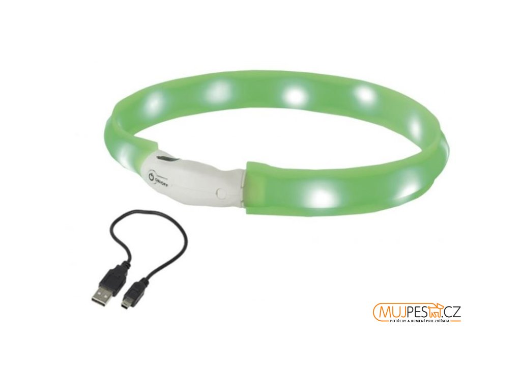 Nobby LED plochý svítící obojek pro psy zelený M 55cm