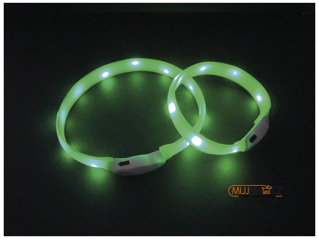 Nobby LED plochý svítící obojek pro psy zelený S 40cm