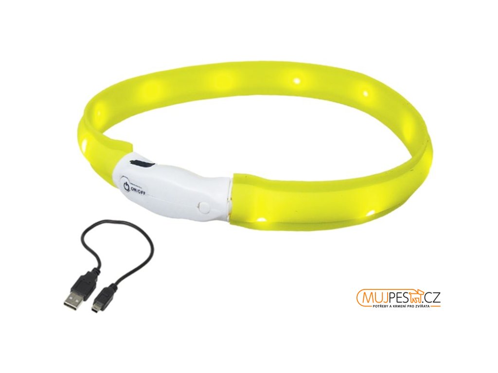Nobby LED plochý svítící obojek pro psy žlutý M 55cm