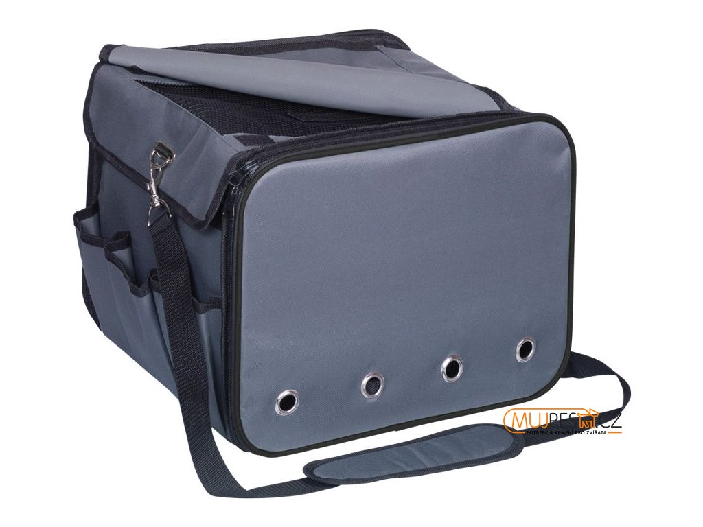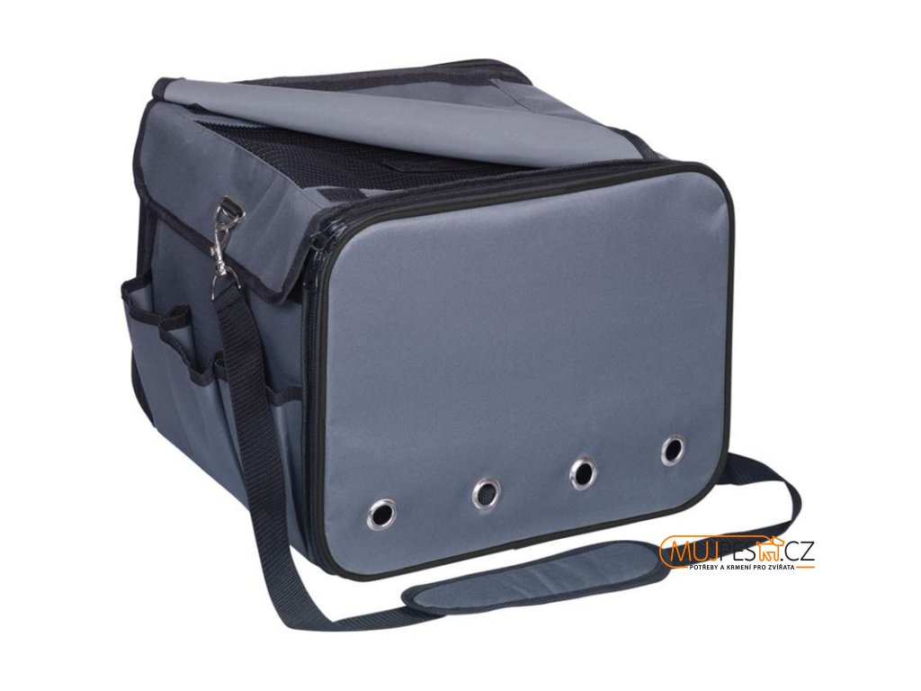 Větrání zajišťují otvory v tašce. 3 kapsičky na chovatelské potřeby.