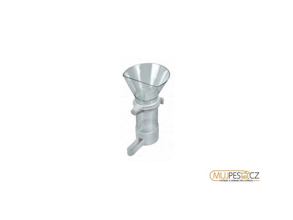 Napáječka na vodu/krmivo pro papoušky. Napáječka je uzpůsobena na připevnění na klec.Objem 190ml, velikost 12,5cm.