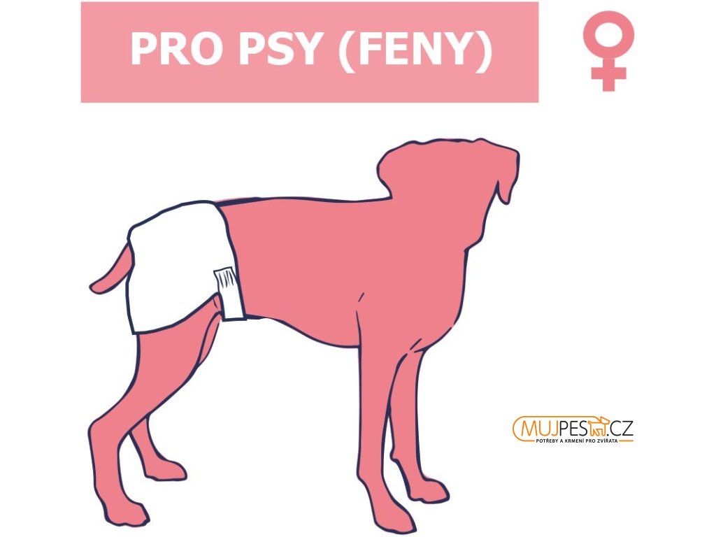 Balení obsahuje 12 ks plen pro psy (feny).