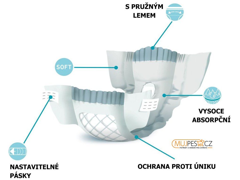 Váš pes tak zůstane v suchu a čistotě při zachování maximálního pohodlí. Pleny mají vysokou absorční schopnost.