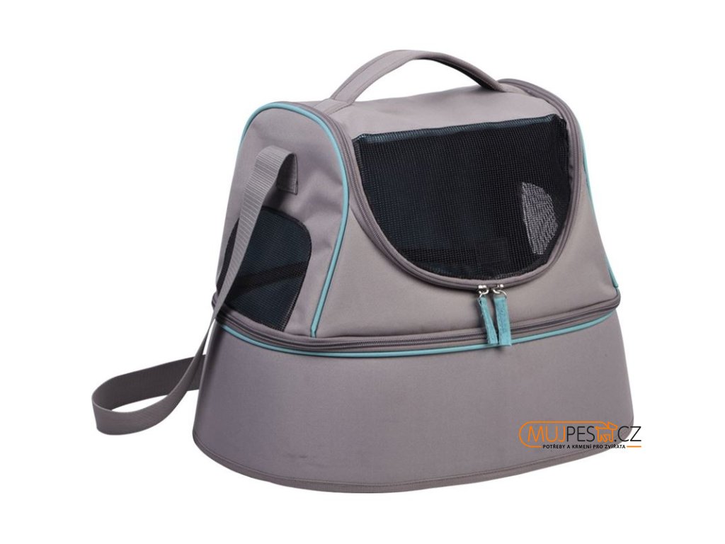Větrání zajištěno síťovinou na třech stranách, zaručuje tak cirkulaci vzduchu uvnitř i při zavřené tašce. S odnímatelným umyvatelným dnem a polštářkem. Integrovaná karabina uvnitř tašky zabraňuje zvířeti ve vyskočení ven. S ramenním popruhem a rukojetí.