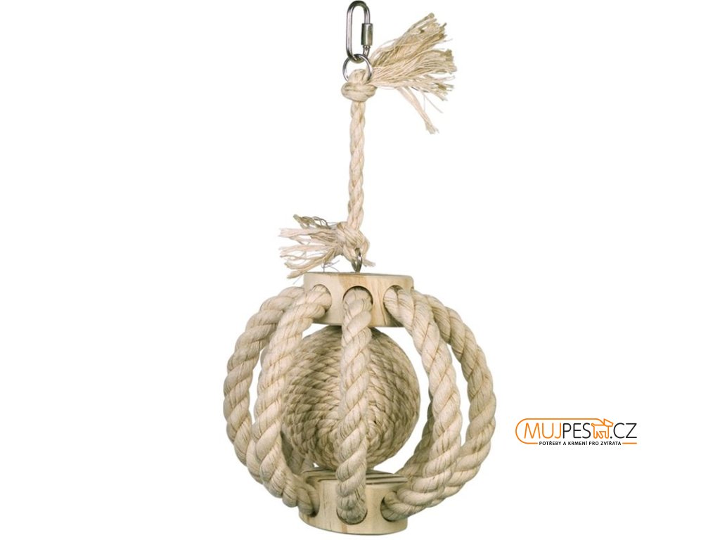 Velmi snadná instalace pomocí kovové karabinky na konci lana.