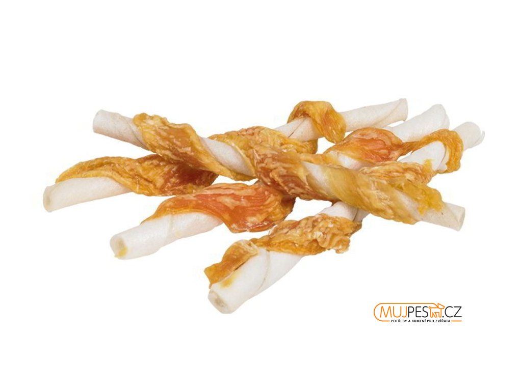 Hovězí žvýkací tyčinka se zapečeným kuřecím masem. Působí jako přírodní zubní kartáček, zabraňuje tvorbě zubního kamene.