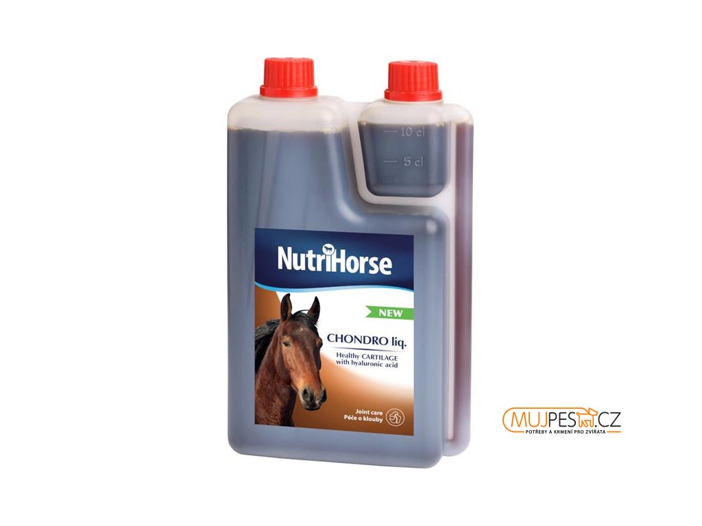 CHONDRO liq. je tekutý doplněk stravy pro podporu zdraví chrupavek a správné produkce synoviální tekutiny. Doplněk je určen na podporu regenerace a výstavby kloubních chrupavek, pouzder, vazů, šlach a pojivových tkání koní.