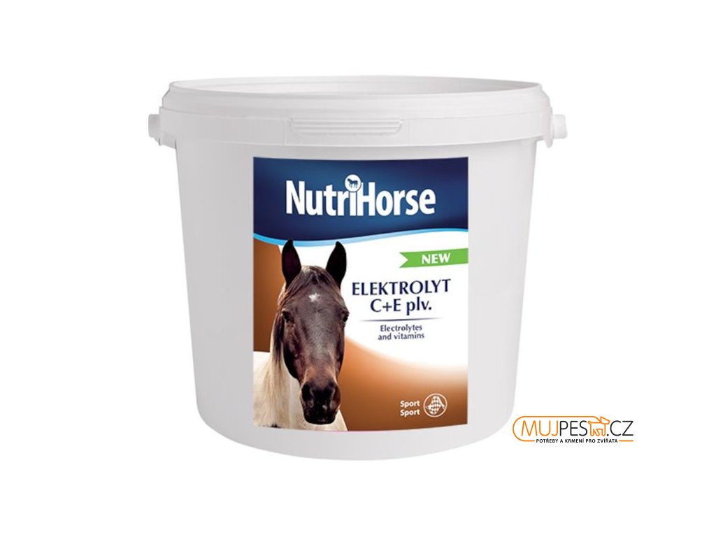 ELEKTROLYT C+E je sypké minerální krmivo složené ze směsi elektrolytických solí doplněných o významné antioxidanty – vitamín C a E. Koncentrace soli je v potu výrazně vyšší než v krvi, a proto při nadměrném pocení dochází k obrovským ztrátám sodíku, draslíku, chlóru, hořčíku a vápníku. Tyto ztráty je nutné rychle obnovit a předejít tak výskytu apatie a svalových křečí způsobených nedostatkem těchto prvků. Přípravek je vhodné podávat zejména v době intenzivní zátěže a v horkých letních dnech, kdy u koní dochází k nadměrnému pocení. Přípravek pomáhá udržovat acidobazickou rovnováhu, zlepšuje regeneraci organismu po zátěži a při použití před zvýšenou zátěží umožní organismu vytvořit si rezervu těchto elektrolytů.