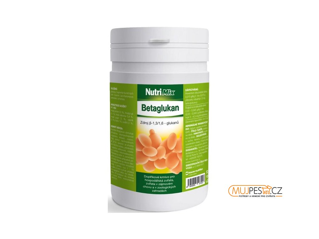 NutriMix Betaglutan se používá na podporu nespecifické imunity. V případě, že dojde ke kontaktu zvířete s infekčním onemocněním, dochází ke spuštění imunitních reakcí. Mezi prvotní imunitní reakce patří pomnožení bílých krvinek (makrofágů), které zajišťují obranu proti choroboplodným zárodkům procesem zvaným fagocytóza. Počet makrofágů je přímo úměrný rychlosti reakce na tyto zárodky. NutriMix Betaglukan zajišťuje zvýšení počet makrofágů pomocí nechráněných β-1,3/1,6 – glukanů dříve, než dojde k onemocnění, a tím rurychluje dpověď na případnou infekci. Je vhodný pro všechny druhy zvířat, především s vysokou užitkovostí, mláďata a zvířata v rekonvalescenci.