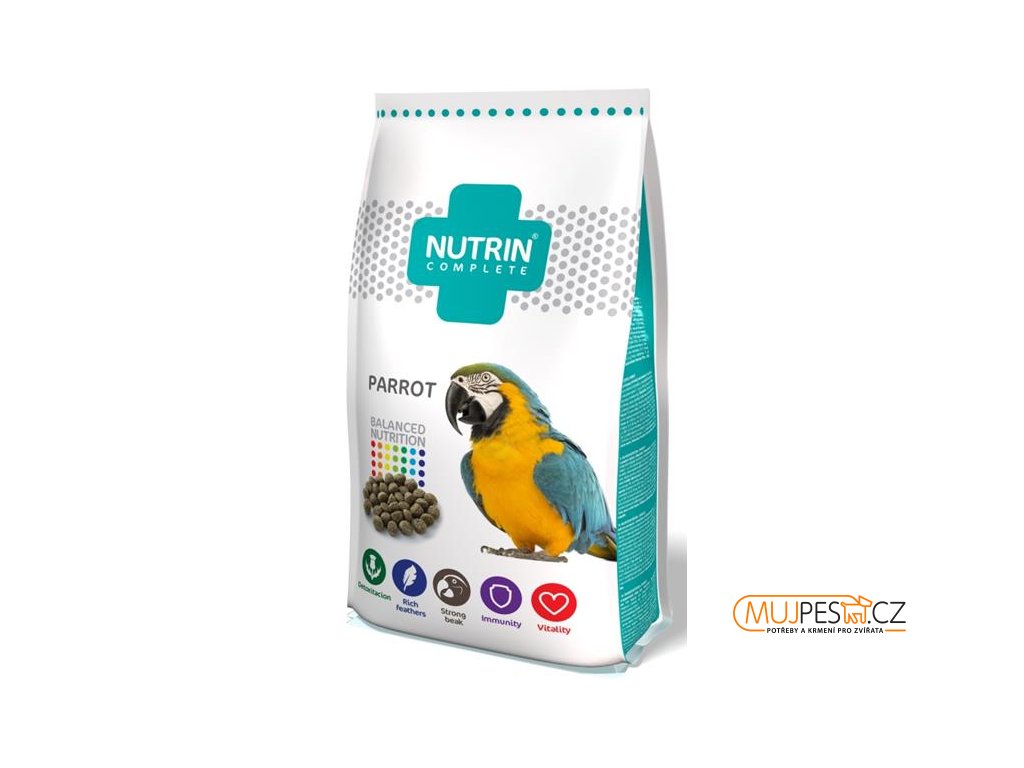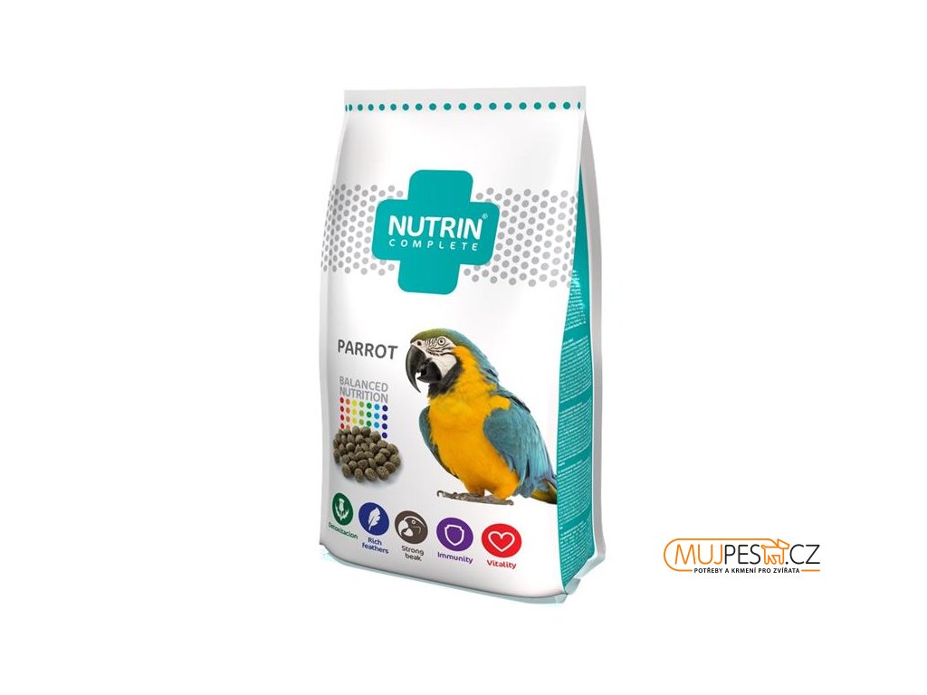 Nutrin Complete Parrot je kompletní extrudované krmivo pro střední a velké papoušky. Podáváním extrudovaného krmiva máte jistotu, že papoušek dostane v každém kousku vyváženou kompletní stravu.