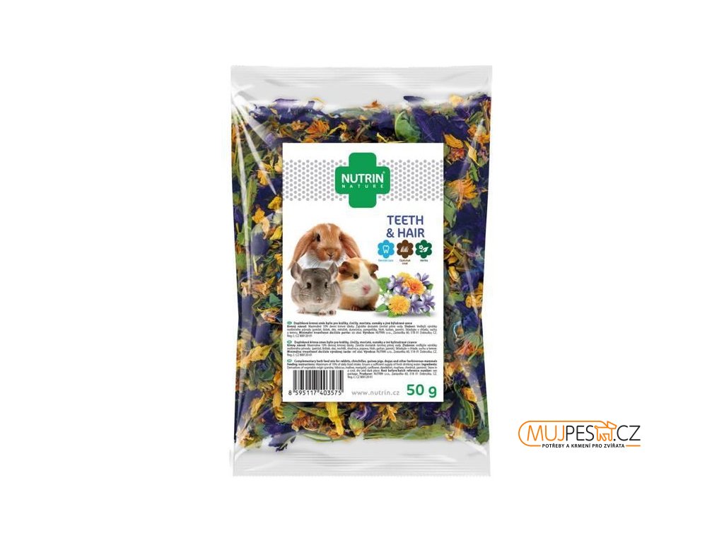 Nutrin Nature Teeth&Hair je doplňková krmná směs bylin pro králíky, činčily, morčata, osmáky a jiné býložravé savce.