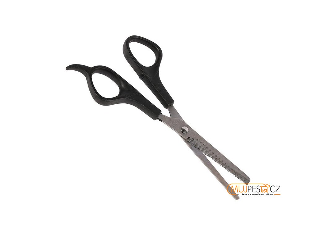 Prostříhávací nůžky Groom Thinning Scissors s čepelemi z kvalitní nerezové oceli a skosenými pilovitými zuby k úpravě středně dlouhé až dlouhé srsti.