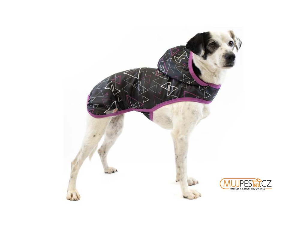 Pláštěnka Trekky ochrání vašeho psa před deštěm, větrem a jiným nepříznivým počasím. Svrchní vrstva z bundové tkaniny s voděodolným zátěrem je podšitá měkkou svetrovinou. Obleček je tvarovaný anatomicky tak, aby psa neomezoval v pohybu, a přitom chránil všechny důležité partie jeho těla. Je opatřený elastickým lemem, který brání úniku tepla po jeho celém obvodu. Gumičky v zadní části zaručí, aby pláštěnka přiléhala k zadním končetinám. V oblasti šíje se nachází otvor pro připnutí vodítka k obojku a praktické poutko pro zavěšení oblečku například při jeho sušení. Díky systému suchých zipů lze pláštěnku snadno a rychle navléknout a díky oboustrannému zapínání pod krkem lze optimálně nastavit obvod krční části. Na obou bocích jsou pak našité zipy, kterými lze zapnout spodek oblečku zleva i zprava. Pro bezpečnější venčení za zhoršené viditelnosti je pláštěnka opatřena reflexními prvky.