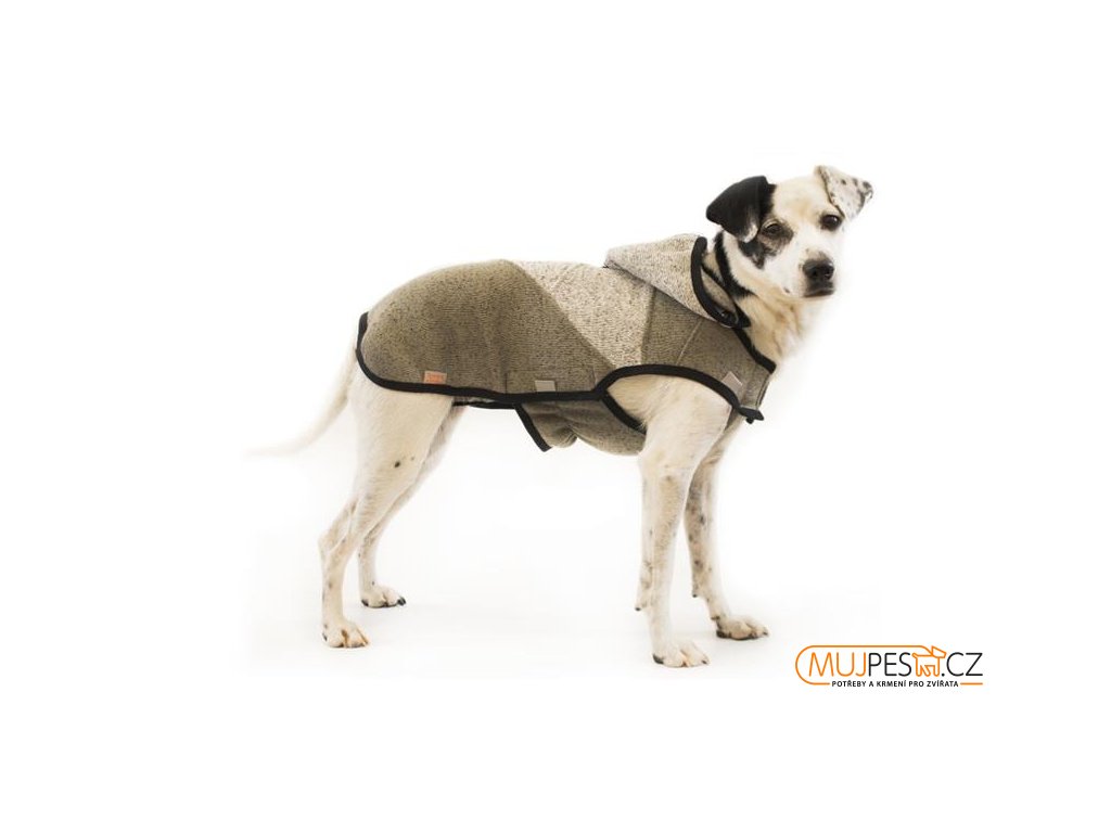Svetr Frankie z kvalitní úpletoviny je vhodný do chladnějšího, ale suchého počasí. Obleček je velice lehký a prodyšný a jeho střih je navržen tak, aby psa neomezoval v pohybu, a přitom chránil všechny důležité partie jeho těla. Okraje jsou obšité pružným lemem, takže obleček výborně drží na těle psa, nepodfukuje a neuniká zpod něj teplo. Gumičky na zadní nohy a ocásek zajišťují, aby svetr nedostával v zadní části. Za krkem je otvor pro připnutí vodítka a všité poutko pro zavěšení (např. při sušení). Oblékání je snadné a rychlé díky systému suchých zipů: 1 pod krkem a 2 na bocích. Pro bezpečnější venčení za zhoršené viditelnosti je svetr opatřen reflexními štítky.