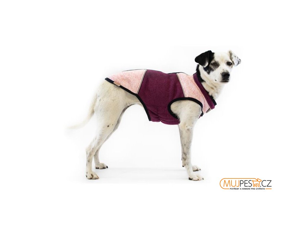Svetr Frankie z kvalitní úpletoviny je ideální obleček do chladnějšího, ale suchého počasí. Obleček je vhodný i pro starší a nemocné psy nebo psy, kteří se neradi oblékají. Je tvarovaný anatomicky tak, aby psa neomezoval v pohybu, a přitom chránil všechny důležité partie jeho těla. Okraje jsou obšité pružným lemem, takže neodstávají a vesta díky tomu výborně drží na těle psa, nepodfukuje a neuniká zpod ní teplo. Pod krkem je všité poutko pro zavěšení (např. při sušení). Oblékání je velmi snadné a rychlé: přední nohy prostrčíte skrz otvory a obleček zapnete pomocí zipu všitého přes celá záda. Pro bezpečnější venčení za zhoršené viditelnosti je vesta opatřena reflexními prvky.