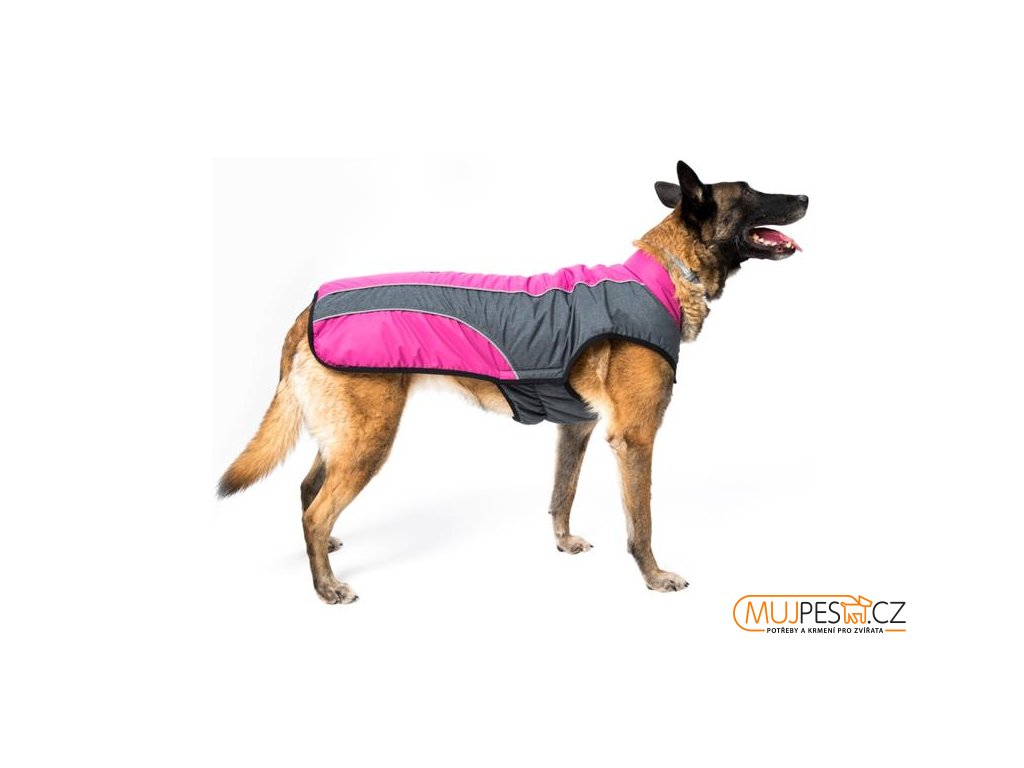 Zimní vesta ESMÉ LUX ochrání vašeho psa před chladem, větrem, deštěm i sněhem. Svrchní vrstva z bundové tkaniny s voděodolným zátěrem je zateplená vafixem a podšitá měkkým flanel fleecem, který nezacuchává srst. Obleček je tvarovaný tak, aby psa neomezoval v pohybu, a přitom chránil všechny důležité partie jeho těla. Gumičky na stehna a na ocásek zajišťují, aby vesta neodstávala v zadní části, a elastický lem brání úniku tepla po celém obvodu oblečku. Za krkem je otvor pro připnutí vodítka k obojku a poutko pro zavěšení (při sušení atd.). Oblékání je snadné a rychlé: vesta se zapíná na suché zipy – 1 pod krkem a 1 pod hrudníkem. Samozřejmostí jsou reflexní prvky.
