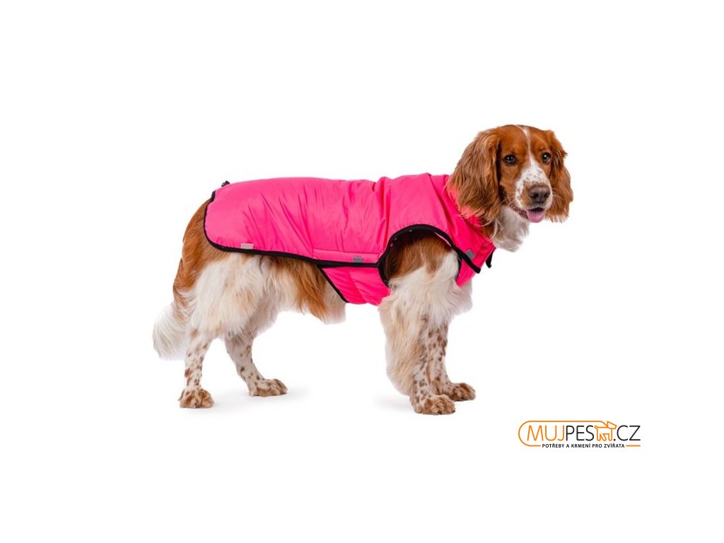 Zateplená vesta Pastel Lux II Sport ochrání vašeho psa před chladem, větrem, deštěm i sněhem. Svrchní vrstva z bundové tkaniny s voděodolným zátěrem je zateplená vafixem a podšitá měkkým flanel fleecem (tzv. minky), který nezacuchává srst. Obleček je tvarovaný anatomicky tak, aby psa neomezoval v pohybu, a přitom chránil všechny důležité partie jeho těla. V zadní části je stahovadlo pro případnou úpravu délky oblečku a gumičky na zadní nohy, které zajišťují, aby vesta v těchto partiích neodstávala. Elastický lem brání úniku tepla po celém obvodu oblečku. Za krkem je otvor pro připnutí vodítka k obojku a poutko pro zavěšení (při sušení atd.). Oblékání je snadné a rychlé díky systému suchých zipů: oboustranné zapínání pod krkem umožňuje optimální nastavení obvodu krční části a zipy na bocích umožňují zapnutí břišní části zleva i zprava. Pro bezpečnější venčení za zhoršené viditelnosti je vesta opatřena reflexními prvky.