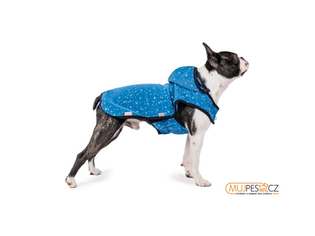 Funkční softshellová vesta Stilla chrání psa před chladem, větrem i deštěm. Vysoce kvalitní třívrstvý softshell má nejen vynikající termo- a hydroizolační vlastnosti, ale také vysokou prodyšnost a elastičnost. Střih je navržen anatomicky tak, aby psa neomezoval v pohybu, a přitom chránil všechny důležité partie jeho těla. Okraje vesty jsou obšité pružným lemem, takže obleček výborně drží na těle psa, nepodfukuje a neuniká zpod něj teplo. Gumičky na zadní nohy a ocásek zajišťují, aby vesta neodstávala v zadní části. Za krkem je otvor pro připnutí vodítka a všité poutko pro zavěšení (např. při sušení). Oblékání je snadné a rychlé díky systému suchých zipů: 1 pod krkem a 2 na bocích. Pro bezpečnější venčení za zhoršené viditelnosti je vesta opatřena reflexními prvky.