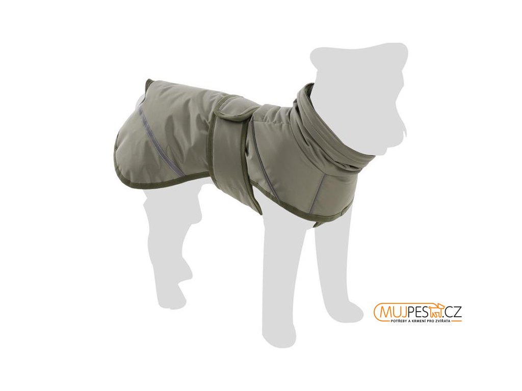 Zimní vesta Cujo je ideální na procházky za chladného až mrazivého počasí. Má spodní termoizolační vrstvu, která udržuje psa v suchu a teple. Vrchní vrstva odpuzuje vodu a nečistoty. V případě znečištění je možné vestu vyprat v pračce na 30 °C. Obleček se jednoduše obléká a zapíná pomocí suchého zipu na hřbetě psa (obr. č. 4). Vnitřní gumičky zabraňují odstávání oblečku na zadních nohách (obr č. 5). Reflexní prvky zajišťují bezpečnější venčení za snížené viditelnosti a otvor v límci připnutí obojku na vodítko (obr. č. 6).