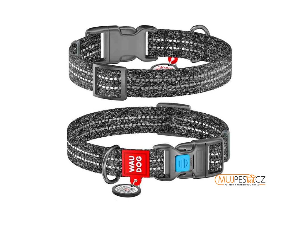 Obojek WAUDOG Re-cotton kombinuje klasický styl a kvalitní provedení s využitím nových technologií. V zájmu udržitelnosti je vyroben z recyklovaných surovin. Pásek je z recyklované bavlny, pevného, ale lehkého, prodyšného a na dotek velmi příjemného materiálu s hypoalergenním složením. Obojek je díky tomu vhodný i pro štěňata a psy toy a mini plemen. Snadno se udržuje – lze jej prát – a po namočení velmi rychle schne. Pro větší bezpečnost má reflexní prošití a Smart ID známku s unikátním QR kódem.