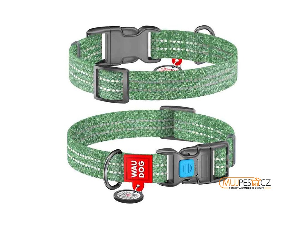Obojek bavlna 20mmx28-40cm WAUDOG tm.zelený